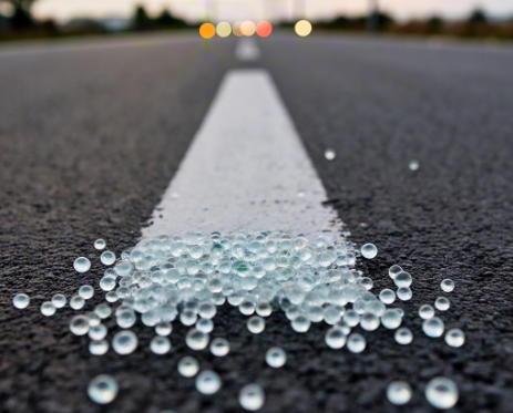 道路标线涂料:分为预混型(玻璃珠与涂料混合)和面撒型(施工时撒布在标线表面)。高折射玻璃珠可使标线逆反射亮度提升数倍,例如在雨雾天气下,其反光效果仍能保持清晰,有效减少交通事故。