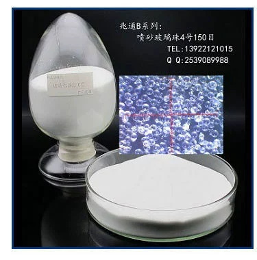 图中有显微放大读数,表面看是白色粉末状,40倍放大显现透明玻璃珠形状。色泽判断质量,越白越优质。反之,越暗喷砂出来的产品也越暗。